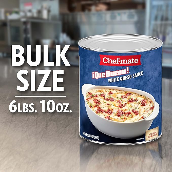 Chef-mate Que Bueno White Queso and Nacho Cheese Sauce, Canned Food, 6 lb. 10 oz (#10 Bulk Can)