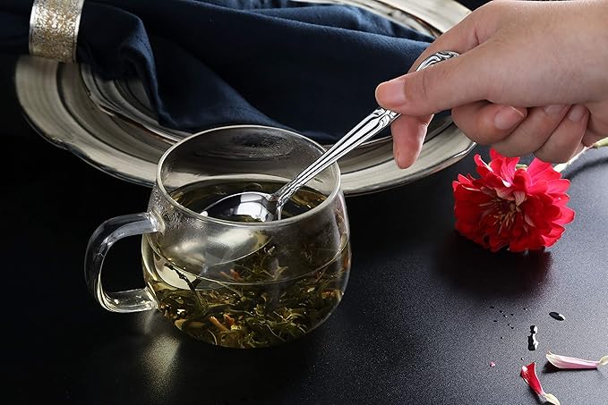 New Star Foodservice 58727 Rose Pattern, 18/0 Stainless Steel, Teaspoon, 6.2-Inch, Set of 12