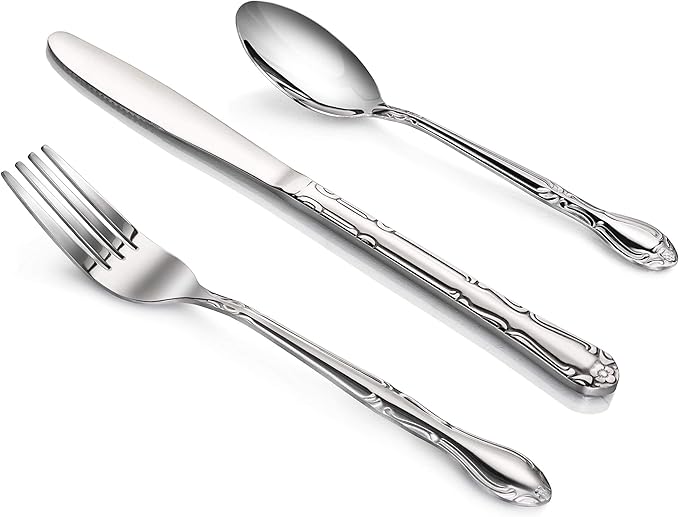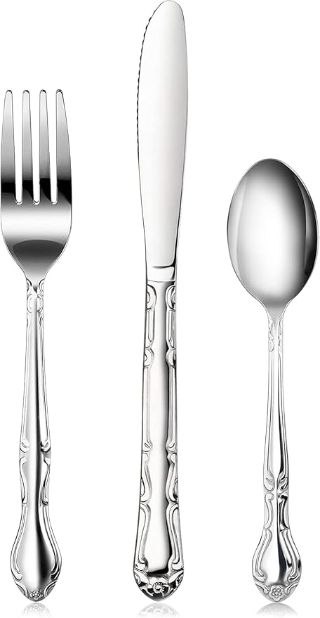 New Star Foodservice 58840 Stainless Steel Rose Pattern 3 Piece Flatware Set, Service for 12, Silver