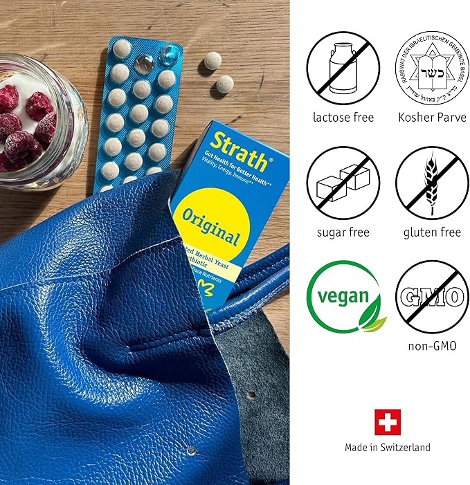 Strath Nutritional Yeast Tablets - Vegetarian, Lactose Free, Artificial Additive Free - Digestive Support, Nutrient Absorption - Unflavored Daily Supplement - Prebiotic and Postbiotic