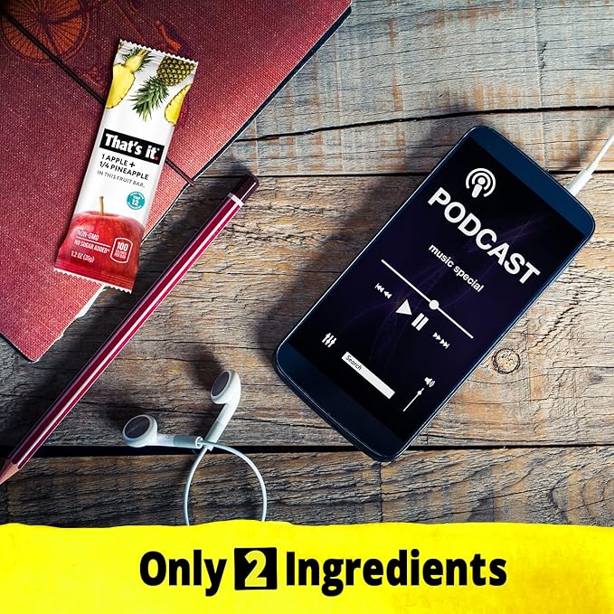 That's it. Apple + Pineapple 100% Natural Real Fruit Bar, Best High Fiber Vegan, Gluten Free Healthy Snack, Paleo for Children & Adults, Non GMO No Added Sugar, No Preservatives Energy Food (12 Pack)