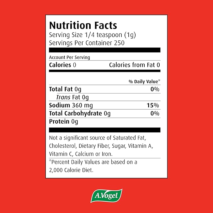 - HEALTHY WAY TO SALT YOUR FOOD - A pure, fine-natural sea salt harvested from the Camargue region, combined with a blend of 16 organically grown, freshly harvested, aromatic herbs and vegetables to complement any meal. Everyone wants great tasting food, but with all the additives and preservatives found in today's market, it can be a challenge to find something that tastes good and is good for you. A.Vogel Spicy Sea Salt does just that!