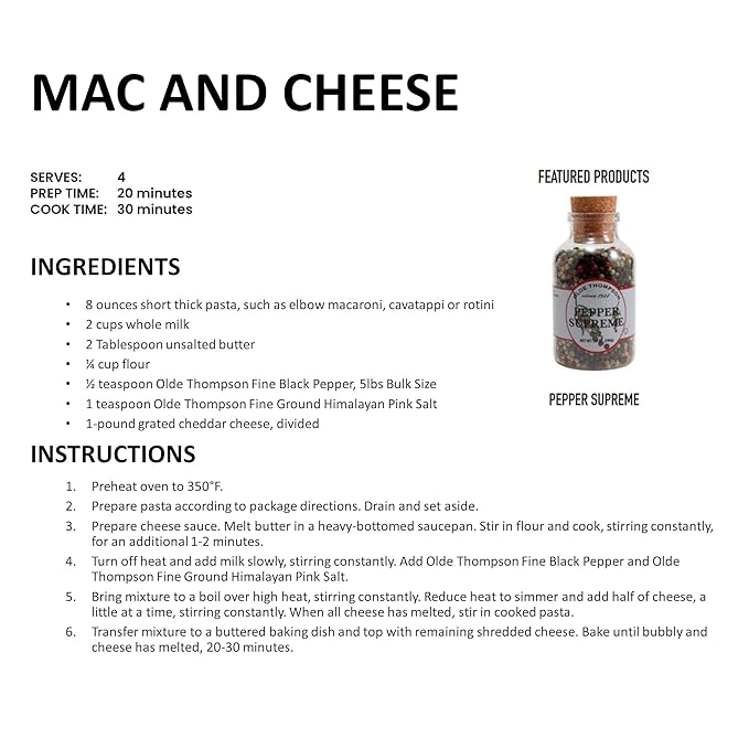 - Specialty : Pepper Supreme, Whole Pepper Blend With White, Black, Pink, Green Peppercorns