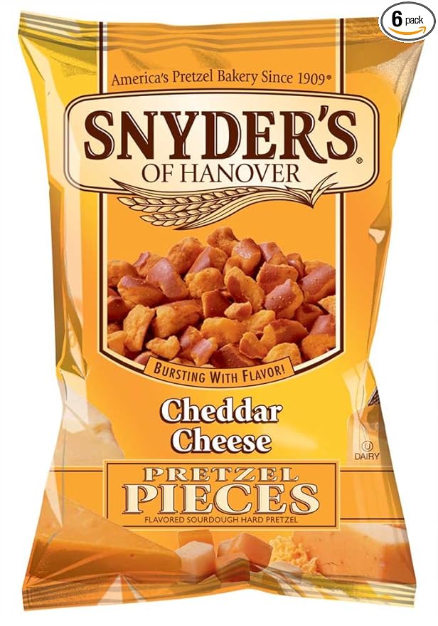 Snyders of Hanover Cheddar Cheese Pretzel Pieces, 8 Ounce -- 6 per case.
