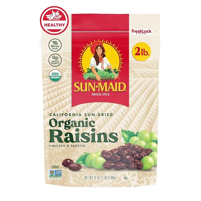 Sun-Maid Organic California Sun-Dried Raisins - 32 oz Resealable Bag - Organic Dried Fruit Snack for Lunches, Snacks, and Natural Sweeteners