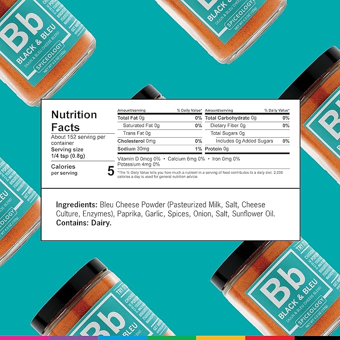 - Savory, Slightly Spicy, & Rich – A bold fusion of real bleu cheese and classic Cajun blackening spices, including paprika, garlic, and cayenne, delivering rich umami with a touch of heat.