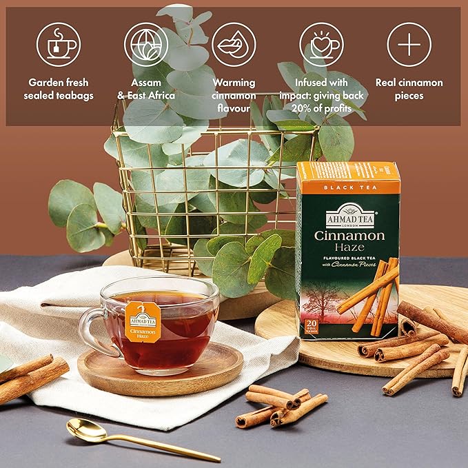 - DELICIOUS & SATISFYING FLAVOR – Ahmad Tea earned 22 Great Taste Awards, Cinnamon Haze being a fan favorite for over 20 years. A delicious cup of cinnamon black tea to give you warmth and comfort.