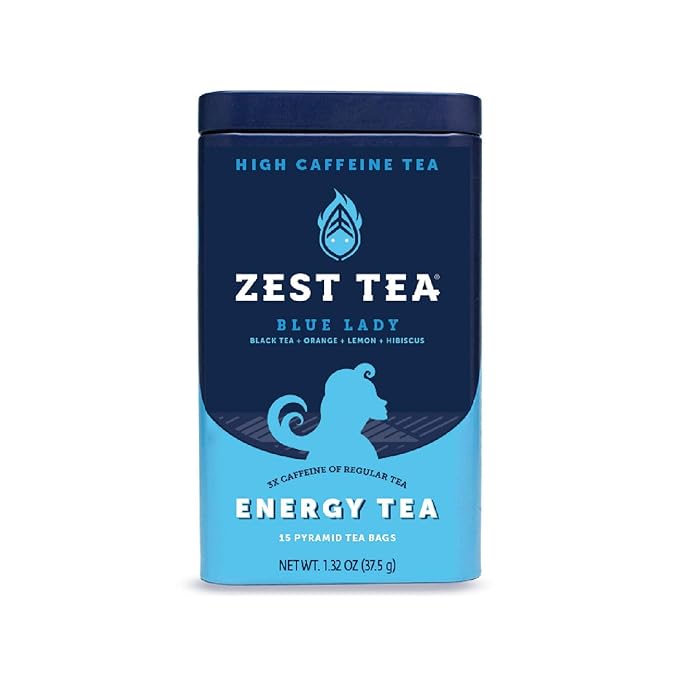 Zest Tea Premium Energy Hot Tea, High Caffeine Blend Natural & Healthy Traditional Black Coffee Substitute, Perfect for Keto, 150 mg Caffeine per Serving, Blue Lady Black Tea, Tin of 15 Sachet Bags
