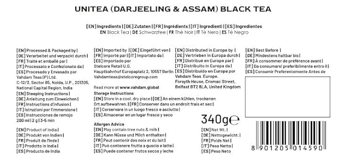 - UNITEA BLACK TEA - Experience the harmonious fusion of Darjeeling and Assam in our Unitea Black Tea. This blend offers a delicate balance of flavors and briskness meticulously curated by our master blender. Crafted from select Darjeeling and Assam teas, it carries a high caffeine content, making it an ideal choice for your mornings. Whether you prefer it pure or with milk, this tea adapts to your taste.