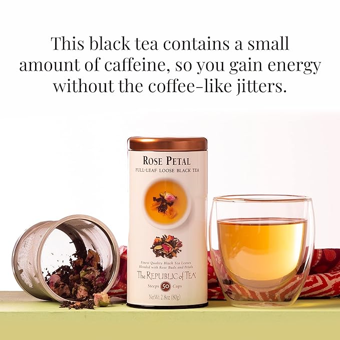 The Republic of Tea Rose Petal Full-Leaf Loose Black Tea, 1 lb Bag | Steeps 200 Cups | Caffeinated