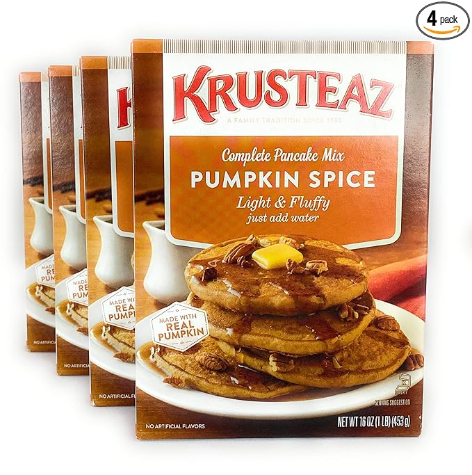 Krusteaz Baking Mix, Pumpkin Spice Complete Pancake Mix, Light & Fluffy, Made with Real Pumpkin & No Artificial Flavors or Preservatives, 16 OZ Box (Pack of 4)