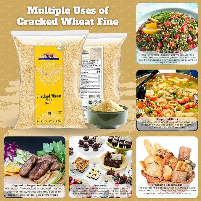 Rani Cracked Wheat Fine (Kansar/Bulgur Wheat#1) 32oz (2lbs) 908g ~ All Natural | Vegan | Gluten Friendly | NON-GMO |Kosher | Indian Origin