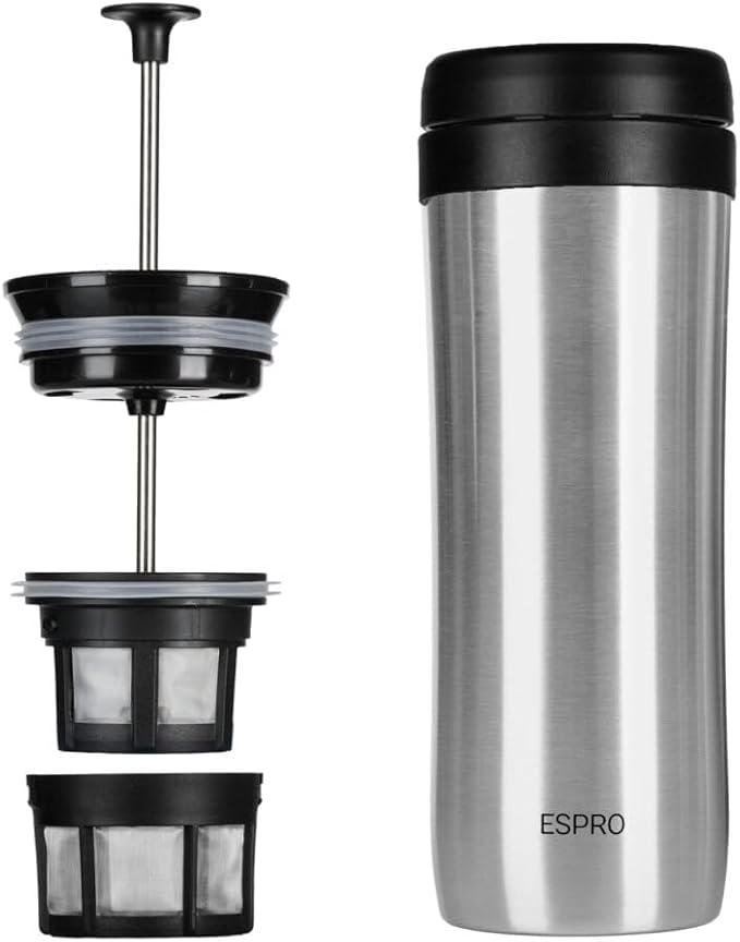 - Become a savvy coffee traveler with the ESPRO P1 travel press and no-leak mug with its double-lock lid; Brew and sip cafe-worthy coffee anywhere. With this portable coffee maker you can go to anywhere without the compromise of low quality coffee.