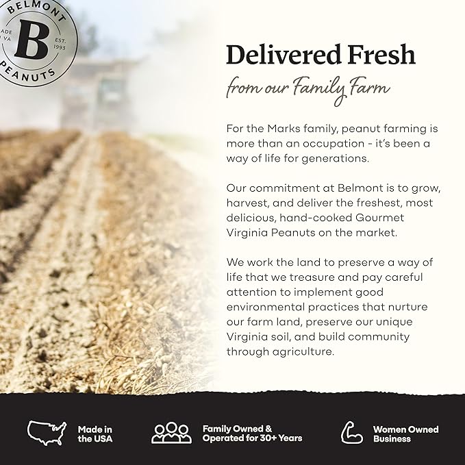 - Small Batch Gourmet Spicy Peanuts – Our commitment at Belmont is to grow, harvest, and deliver the freshest, most delicious, hand seasoned Virginia peanut on the market, with just the right amount of crunch and seasoning.