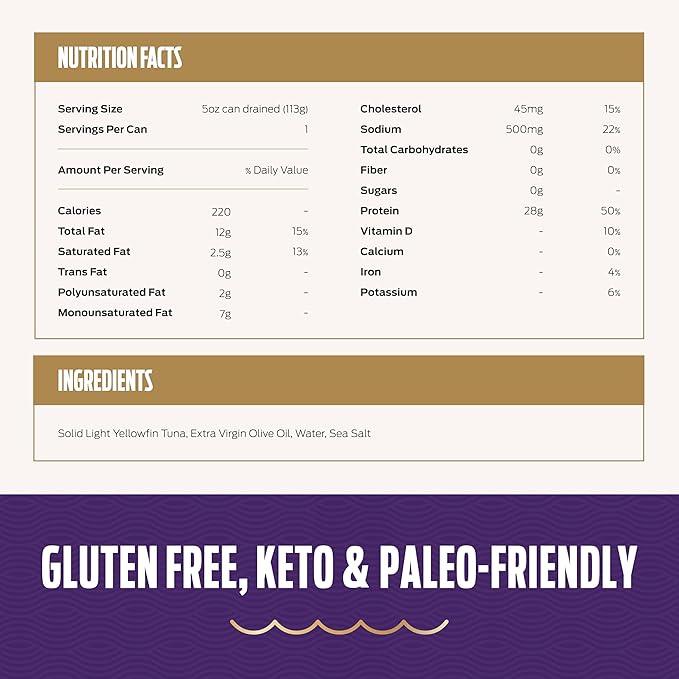 - NUTRIENT-RICH YELLOWFIN TUNA: Packed with protein and heart-healthy omega-3s, Genova yellowfin tuna is perfect for keto, paleo and Mediterranean diets. No GMOs, 100% natural ingredients and no preservatives — just simple ingredients and rich taste.
