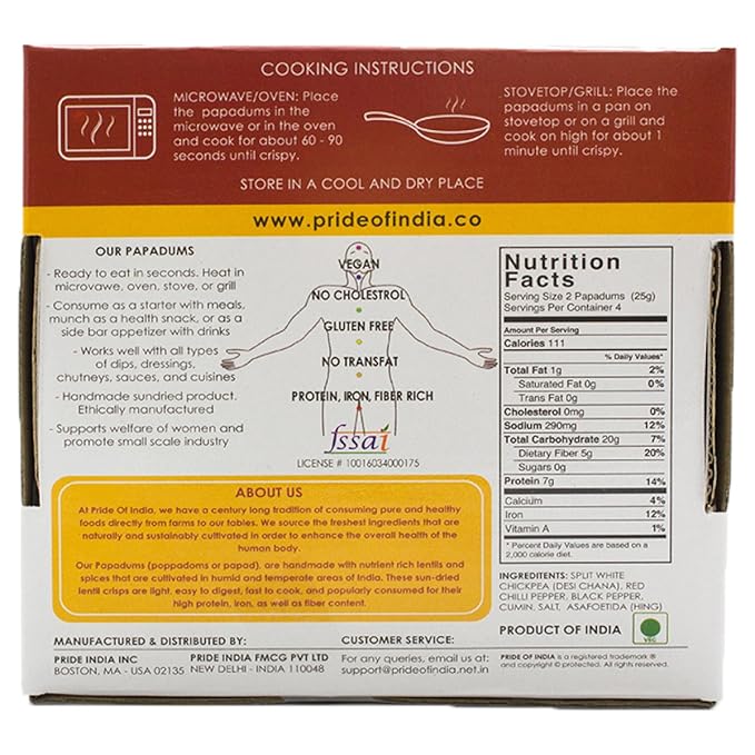 Pride Of India - Spicy Chickpea Masala Papadum Lentil Crisp, 10 count (3.53oz - 100gm) - Microwaveable Instant Chips, Gluten-Free Vegan Crackers, Healthy Protein, Fiber & Iron Rich Snacks