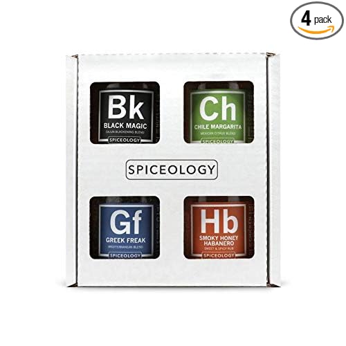 Spiceology - 4-Pack Signature Series - Smoky Honey Habanero, Chile Margarita, Greek Freak, and Black Magic - Grilling Spices - BBQ Rubs Gift Sets - Spices and Seasonings Set