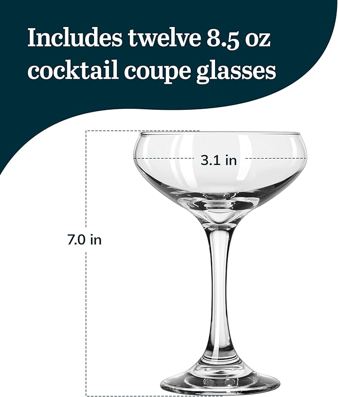 - Modern and Fancy: Your search for the perfect coupe glass ends with our modern, coupe cocktail glasses set – this functional and versatile glass martini glasses set contains 12, 8.5 oz coupe glasses