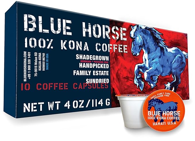 - TRY A CUP: Blue Horse 100% Kona Coffee comes highly rated by thousands of satisfied and loyal customers who have loved our delicious, US-made coffee since 2005. We will let you decide for yourself, and hope you will love our coffee as well.