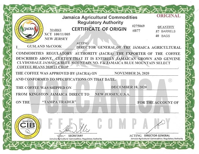 - 100% Pure Jamaica Blue Mountain Coffee Certified by the Jamaica Agricultural Department for a pure authentic taste.