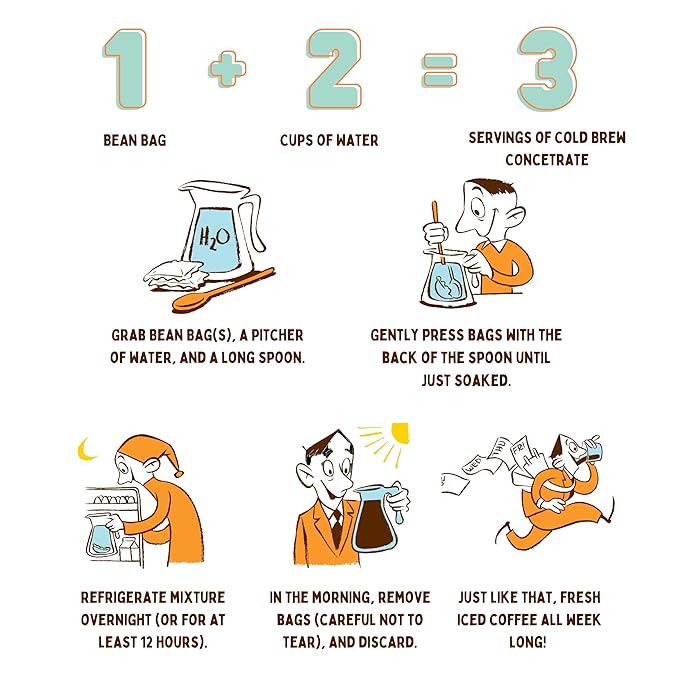 - Ultra convenient: Simply steep bean bags in cold water for 12-24 hours and you’re ready to enjoy! No need for special equipment, say goodbye to messy brewing processes and hello to convenience