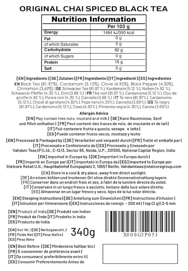 - INDIA'S ORIGINAL SPICED TEA - Indulge in India's Original Masala Chai Tea, a cherished traditional blend. Crafted from black tea and a medley of fresh aromatic spices including cardamom, cinnamon, black pepper & clove, it's renowned for its bold flavors. With high caffeine, it's perfect for your mornings. Customize your experience by enjoying it with or without milk. Dive into the rich tapestry of Indian tea culture with every delightful sip.