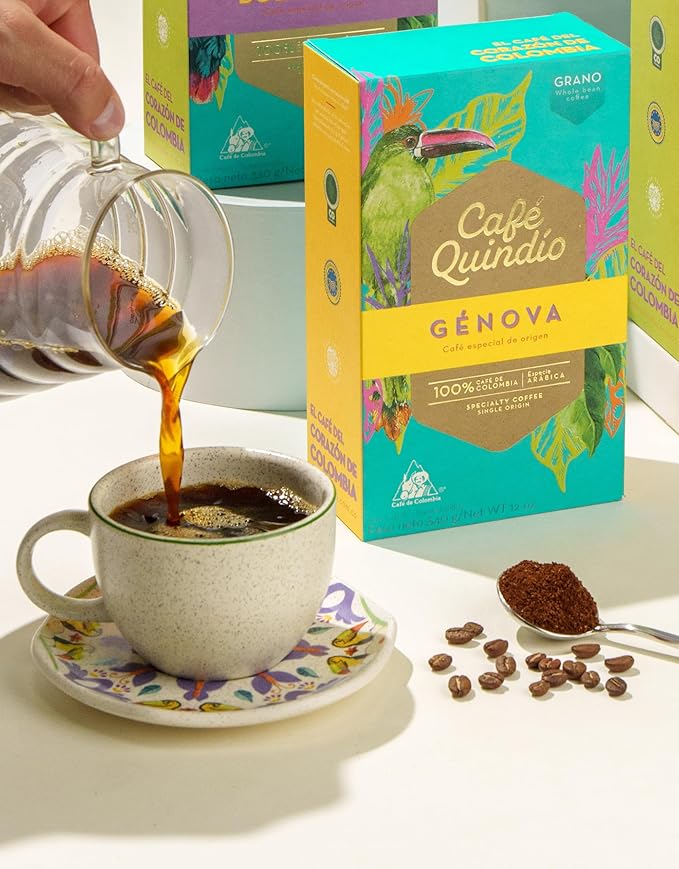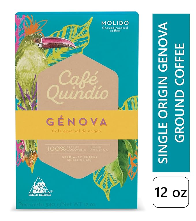 Cafe Quindio Genova Single Origin - Medium Roast 100% Colombian Excelso Ground Arabica Coffee - 12 Ounce Bag (340g)