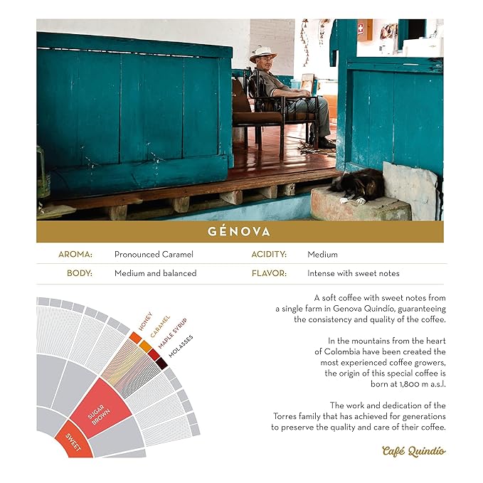 - Green coffee sourced from the same farm in Genova, Quindío, owned by the TORRES family