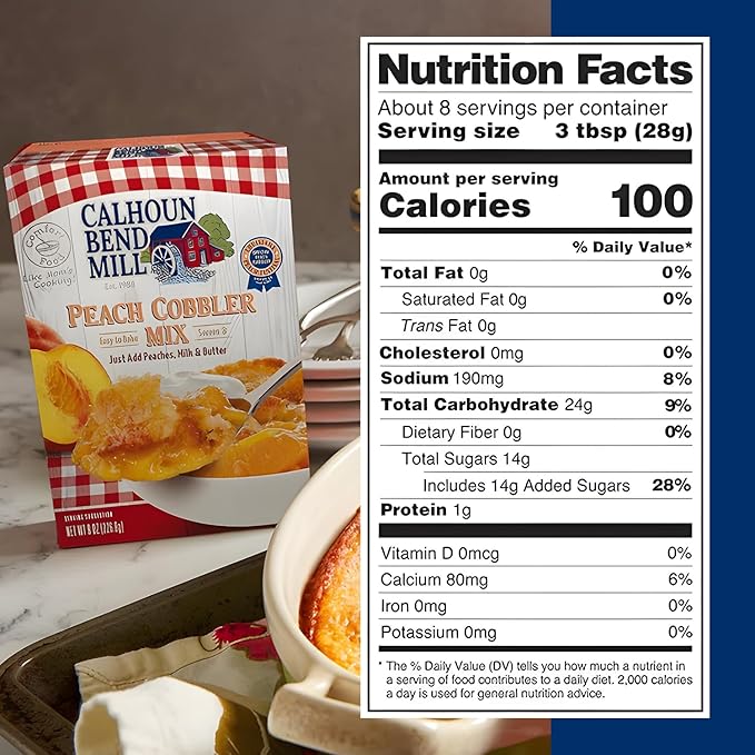 - Package Contents: 6 Units of Calhoun Bend Mill Peach Cobbler Mix (8 Oz), Approx 8 Servings Per Pack