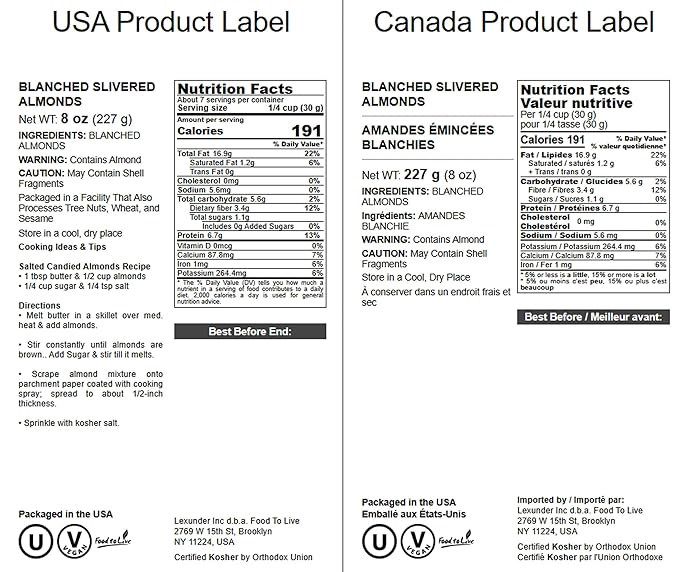 - ✔️ Blanched slivered almonds from Food to Live contain a large number of essential nutrients.