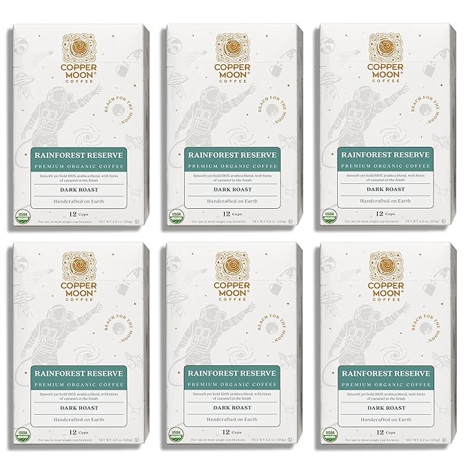 Copper Moon Single Serve Coffee Pods for Keurig K-Cup Brewers, Dark Roast, Rainforest Reserve Blend, 72 Count