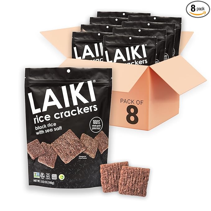 Gluten Free Rice Crackers - Seed-Oil Free - Snacks - Low Sodium Crackers Crunch - Allergen-Friendly , Vegan, Non-GMO Verified, FODMAP Friendly, Black Rice Simply Sea Salt flavor - 3.53 Oz Bag (Pack of 8)