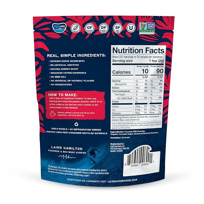- SUPERFOOD NOURISHMENT - Laird Superfood Creamers are crafted from the highest quality all-natural whole food ingredients & sustainably sourced for delicious powder coffee creamer