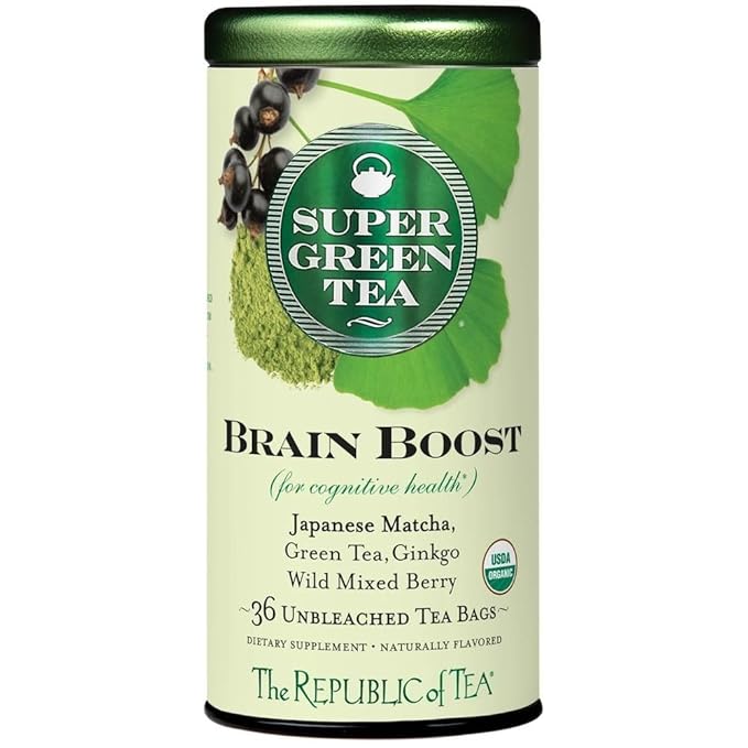 The Republic of Tea - Brain Boost SuperGreen Green Tea, Ginkgo Biloba, and Matcha Tea Blend (36 Tea Bags)