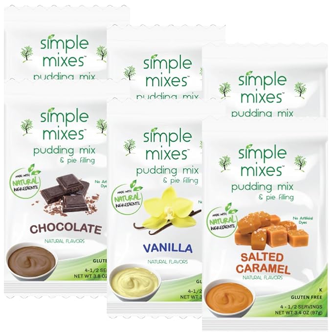 Simple Mixes Natural Instant Pudding & Pie Filling Mix Variety, Chocolate, Vanilla & Salted Caramel, Gluten and Dye-Free, No Fat, or Lactose, Kosher, Variety 6 Pack