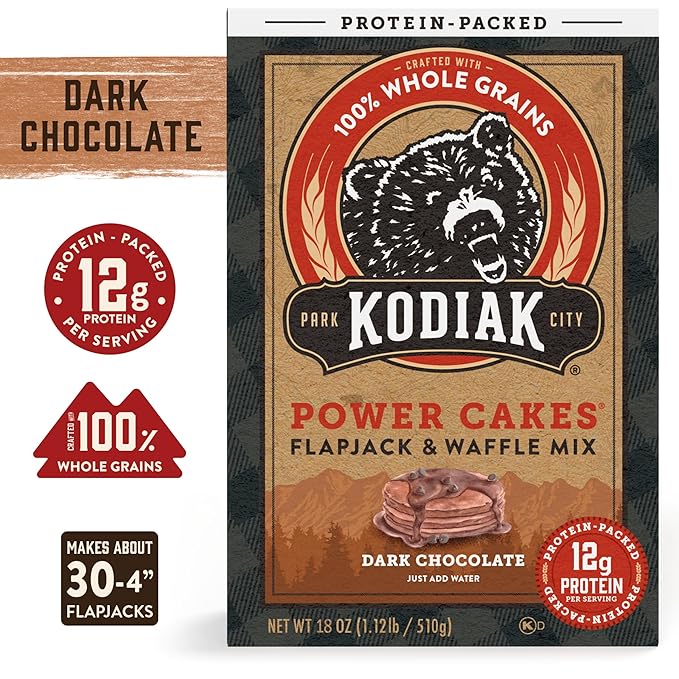 - You will receive a Pack of (6) Kodiak Cakes Power Cakes, Non GMO Protein Pancake, Flapjack and Waffle Mix, Dark Chocolate, 18 Ounce