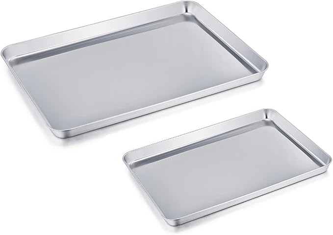 - HEALTHY MATERIAL - These baking sheets are made of high quality 18/0 magnetic stainless steel without toxic chemical coating; Rust resistant and sturdy material make these sheets perfect for everyday use