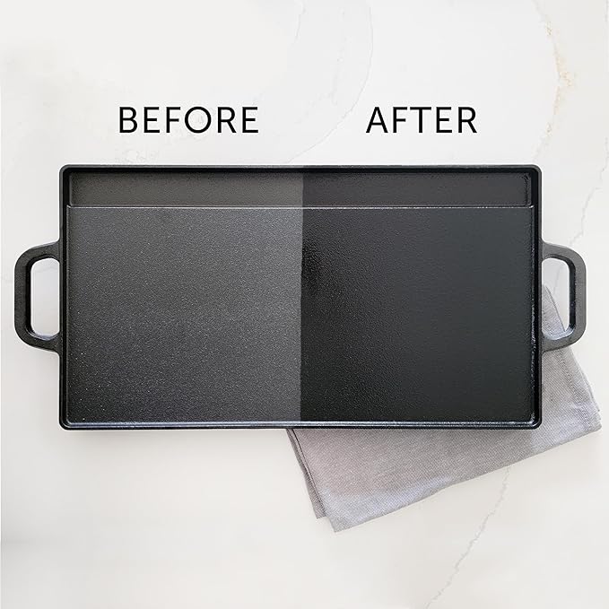 - SEASONS CAST IRON | Designed to season & condition cast iron while protecting cookware from moisture that leads to damage & rust. Makes cleaning cast iron easier by creating a seasoning that is non-stick & prevents food from drying on.
