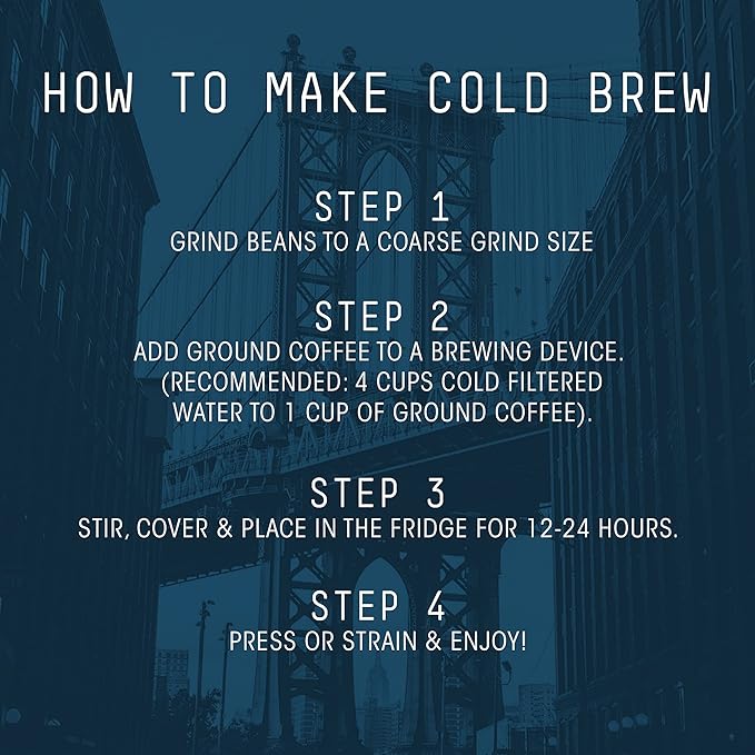 - COARSE GROUND COFFEE FOR COLD BREWING – We start with gourmet arabica coffee beans from Colombia, then we grind them to the perfect coarse ground size for optimal cold brew extraction. Our grounds are perfect for using in your at-home cold brew coffee maker or system, French press, pitcher, or mason jar.