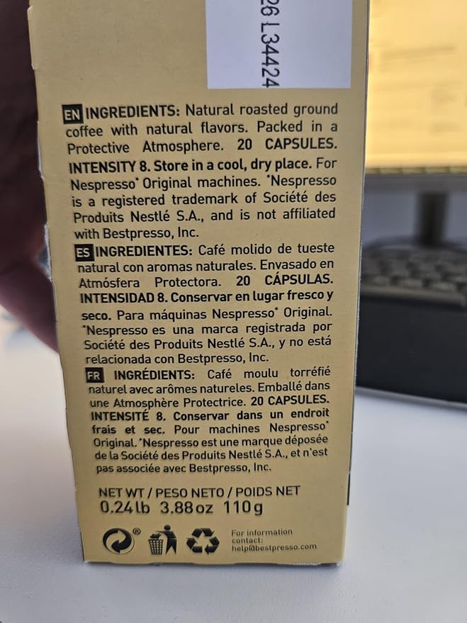 Bestpresso Coffee for Nespresso Original Machine 120 pods Certified Genuine Espresso Flavored Pack Vanilla Pods Compatible with Nespresso Original 60 Days Satisfaction Guarantee