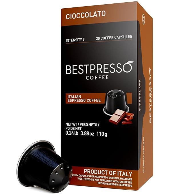 Bestpresso Coffee for Nespresso Original Machine 120 pods Certified Genuine Espresso Chocolate Blend (Medium Intensity) Pods Compatible with Nespresso Original 60 Days Satisfaction Guarantee