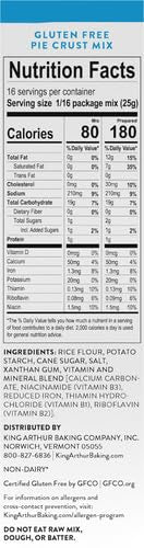 - King Arthur Pie Crust Mix is Non-GMO Project Verified; Certified Gluten-Free by The GFCO, a program of the Gluten Intolerance Group (GIG); Certified Kosher (instructions included to make the mix non-dairy)