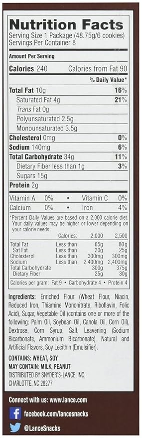 Lance Nekot Cookie Sandwiches Lemon Creme Filling 8 Count (Pack of 3)