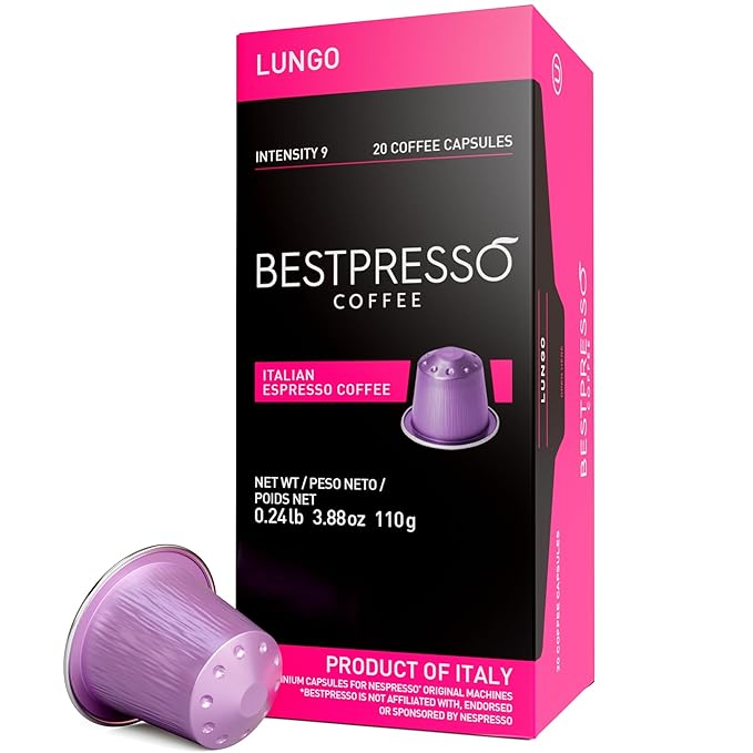 Bestpresso Coffee for Nespresso Original Machine 120 Aluminum pods Certified Genuine Espresso Lungo Blend (High Intensity) Pods Compatible with Nespresso Original 60 Days Satisfaction Guarantee