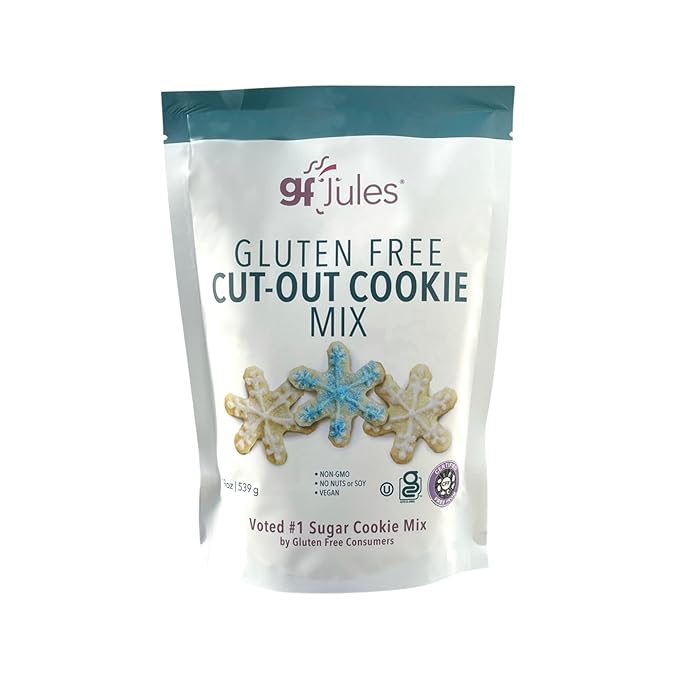 - GLUTEN FREE COOKIES: Gluten free cut-out cookie mix for the discriminating cookie lover. Light taste, clean finish–these delicious cookies taste just like the classic cut-out cookies from your past! Jules' 19 ounce can makes 36 cookies (depending on size) and it makes memories that last a lifetime! Note: PACKAGING MAY VARY but you will always receive the same, superior product.