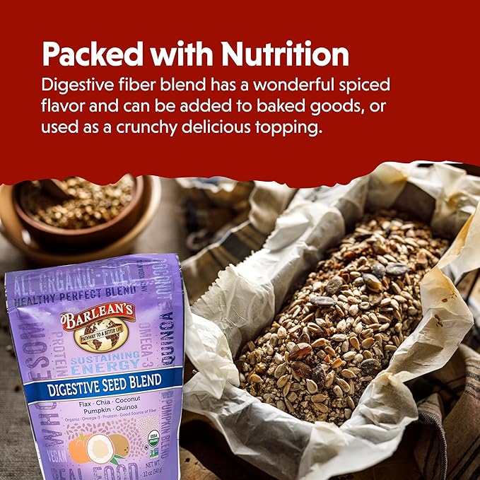 Barlean's Organic Digestive Seed Blend Fiber Supplement with Whole Chia, Ground Flax and Pumpkin Seeds, Quinoa, and Coconut, Rich in Omega 3 and Dietary Fiber, 12 oz