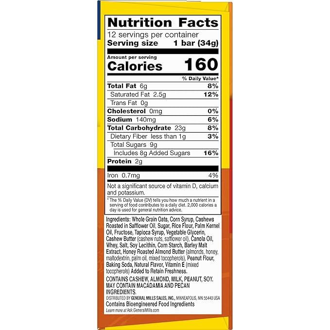 - CHEWY GRANOLA BARS: Positively bursting with cashews and sweet granola; A must-have for an on-the-go snack or in a lunch box