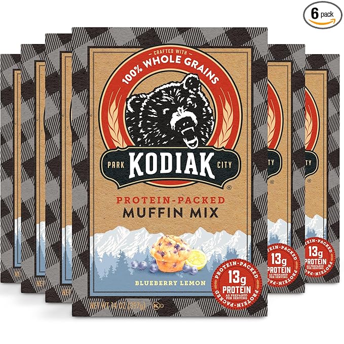 - You will receive a Pack of (6) Kodiak Cakes Power Bake, Non GMO, Protein Packed Muffin Mix, Blueberry Lemon, 14 Ounce