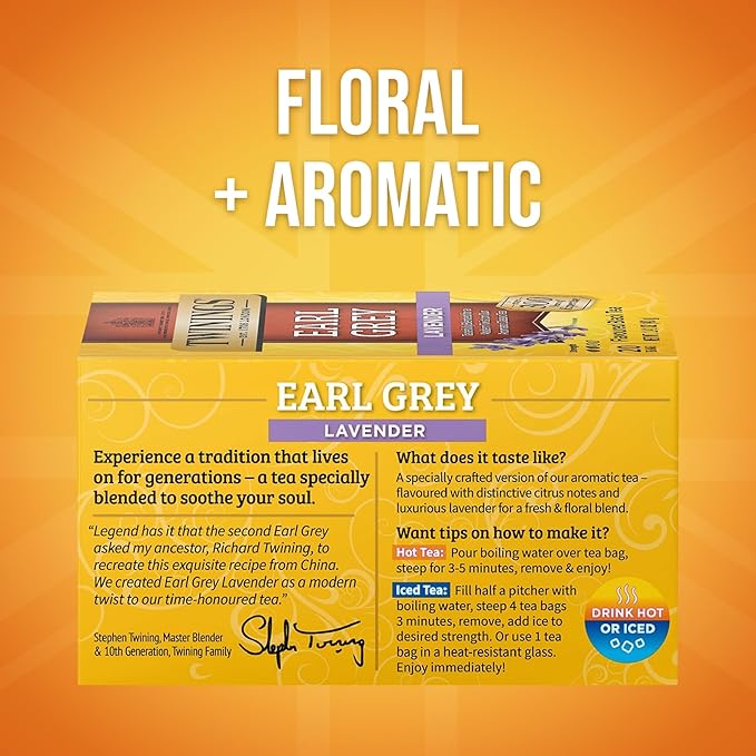 - A MODERN TWIST ON A CLASSIC TWININGS TEA: Experience the delights of our classic Earl Grey tea infused with the vibrant floral notes of lavender.