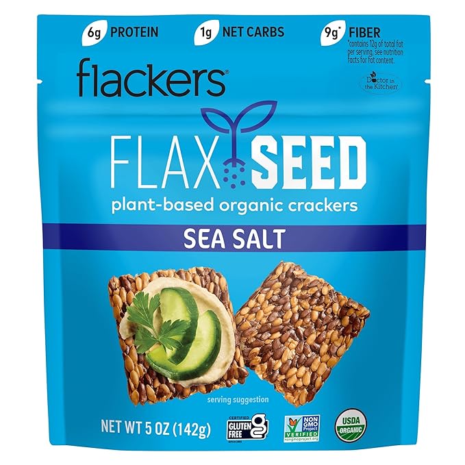 - CRUNCHY, NOURISHING, LOW-CARB SNACKING: Flackers deliver a crave-worthy crunch along with good fiber, omega-3's, vitamins and minerals; Perfect for pairing with your favorite spreads and dips; Pack of 1